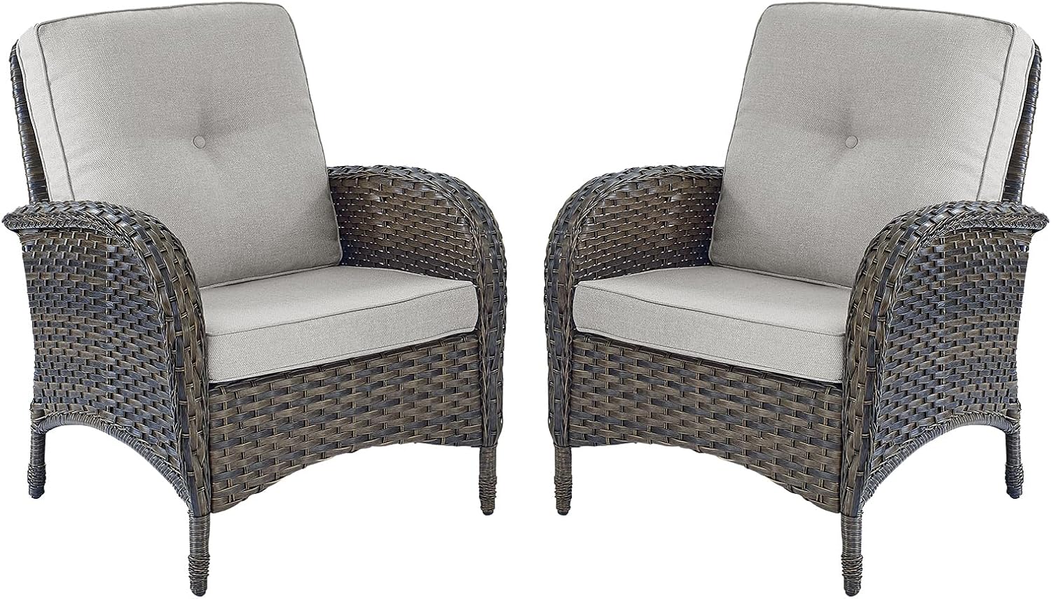 HUMMUH Outdoor Wicker Chairs Patio Dining Chairs Set of 2 with High Back and Deep Seat for Garden,Porch,Backyard,Balcony (Brown/Beige)