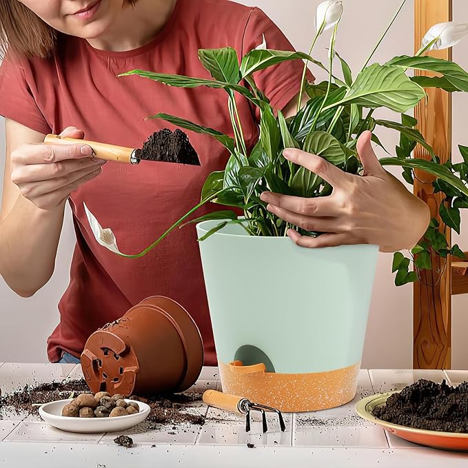 GARDIFE 10/9/8 inch Plant pots, planters for Indoor Plants, self Watering Plant Pot, Flower pots, Green