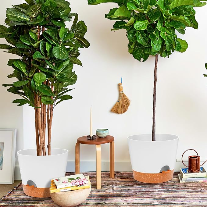 GARDIFE 12 inch Plant Pots, planters,Self Watering Pots, 2 Pack Large Plastic Flower pots with Deep Reservior and High Drainage Holes for Indoor Outdoor Plants and Flowers, White