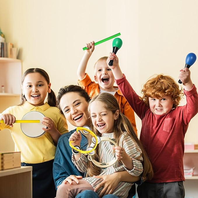 - Stimulate Musicality: these plastic musical instruments make a crisp sound, igniting children's interest in music while improving their basic rhythmic skills; The egg shaker and rhythm sticks are particularly paired to help young ones explore different sounds, fostering musicality