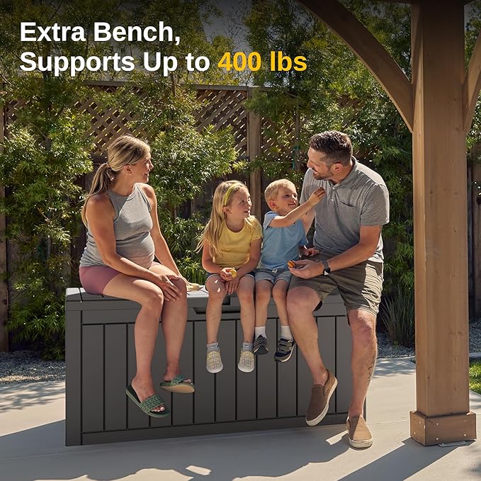 - π₯π’ππ¨π¦π§ & π¦π§ππππ πππ¦πππ‘: Support up to 400 lbs. Reinforced with metal rods and internal supports, providing 30% more strength. Thicker (0.08") material and precise assembly reduce warping, making the patio storage box more stable