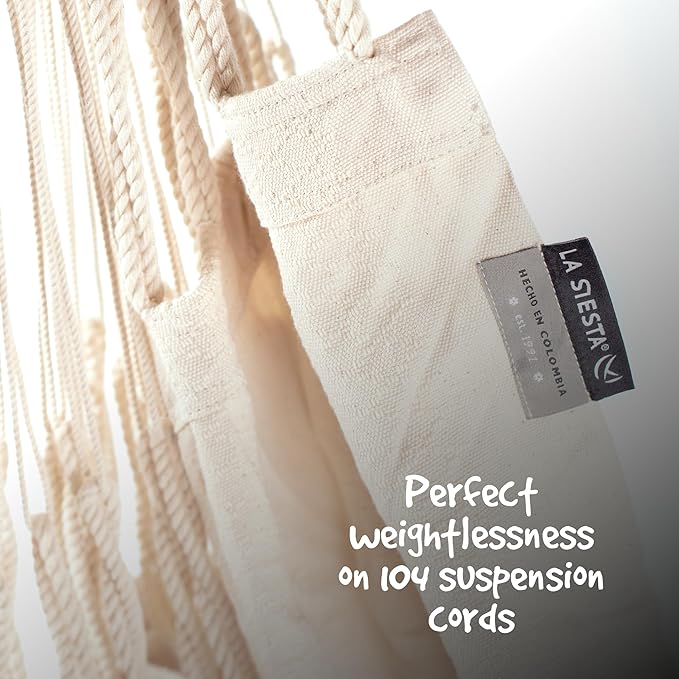LA SIESTA - Large Comfort Habana Cotton Hammock Chair & Stand - Indoor/Outdoor Hanging Chair Swing for Bedroom, Porch, Balcony - Boho Chair - Latte