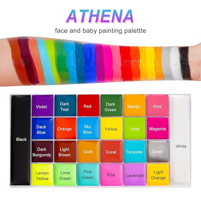 - 【26 Color Face Painting Palette】 - This is an oil-based painting palette with 26 highly pigmented colors (with matte, shimmer), including two large black and white pans. The creamy texture covers the skin perfectly, giving your makeup a waterproof and long-lasting effect.