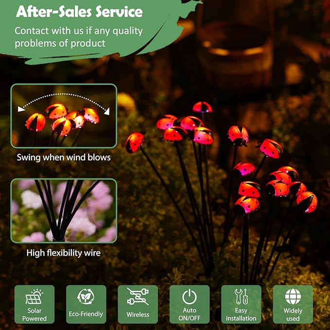 - Swaying in the Wind:The reinforced steel wire is extremely tough and flexible, which makes it easy to arrange the shape while also being able to easily sway with the wind, and the Ladybug become vivid and more ornamental