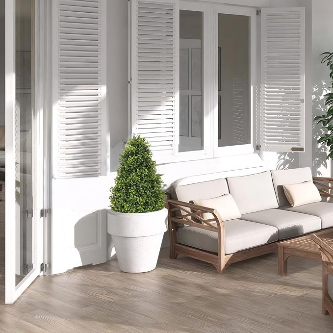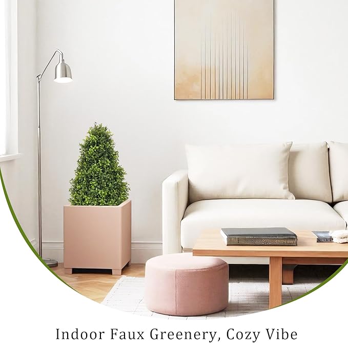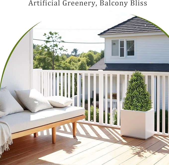 - Durable & Weatherproof - Crafted with UV-resistant plastic leaves and a sturdy cement base, this topiary trees artificial outdoor decor withstands sun, wind, and rain. A long-lasting boxwood topiary ideal for year-round display outside or inside