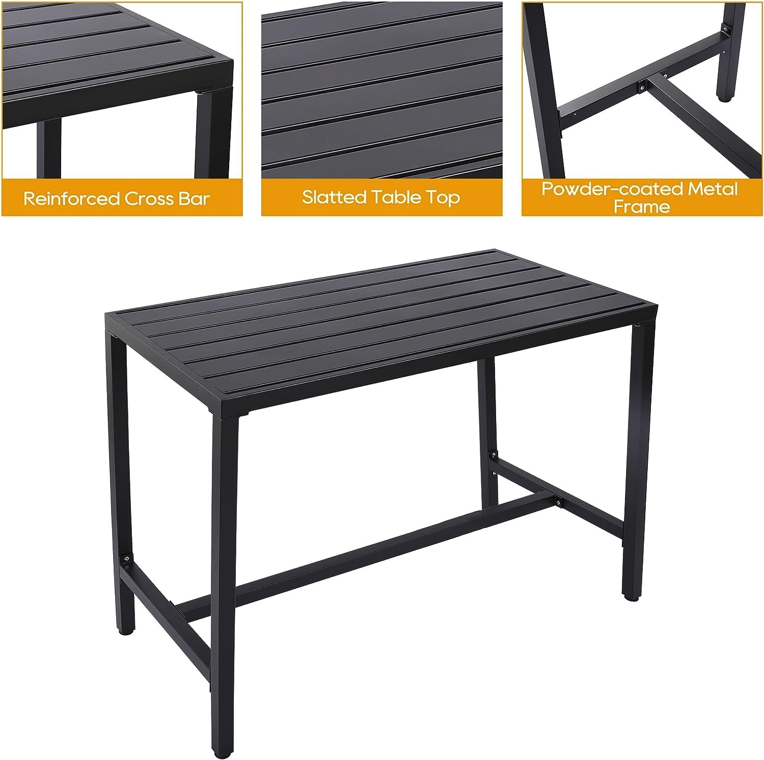 - Built to Last: Our patio pub set is made of reinforced metal frame, which is sturdy and durable for long time use. Besides, the powder coating makes the high dining bistro set weather-resistant, waterproof, and fade resistant, which is a great choice for indoor and outdoor use