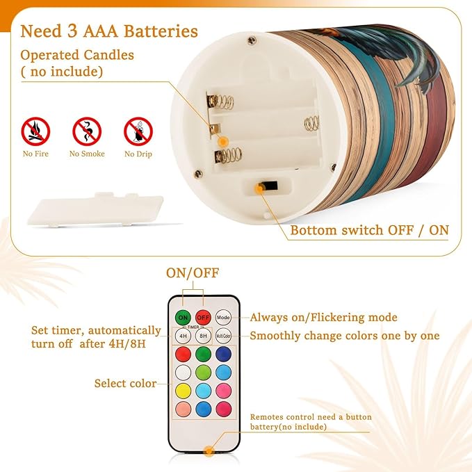 - Convenient Remote Functions: Includes an 18-key remote controller with a timer. You can control these candles remotely when they are placed somewhere difficult to touch. Set 4H/8H timers will save you trouble turning them on/off, they will come back on automatically at the same time every day. Also, you can adjust the light color as you want
