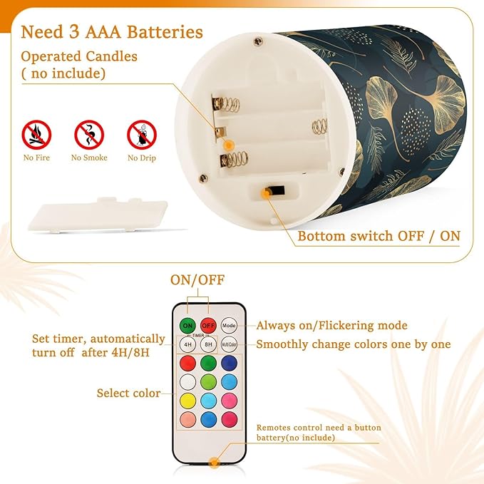 - Convenient Remote Functions: Includes an 18-key remote controller with a timer. You can control these candles remotely when they are placed somewhere difficult to touch. Set 4H/8H timers will save you trouble turning them on/off, they will come back on automatically at the same time every day. Also, you can adjust the light color as you want