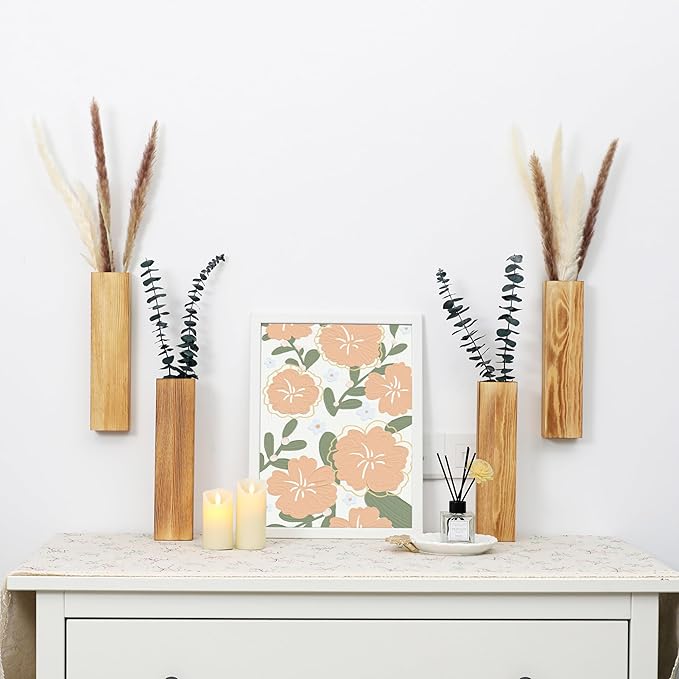 - 【Excellent & Sturdy Material】 Our wooden wall flower decor plnaters are crafted from natural pine wood with unique textures,each piece has its distinct character, adding to their artistic appeal. Though not intended for holding water, these wall plant holders are sturdy and lightweight, ensuring they endure as captivating room decor for an extended period. They serve as an ideal display for artificial greenery plants, faux flowers, seasonal decorations, lavenders, eucalyptus sprigs, or cotton