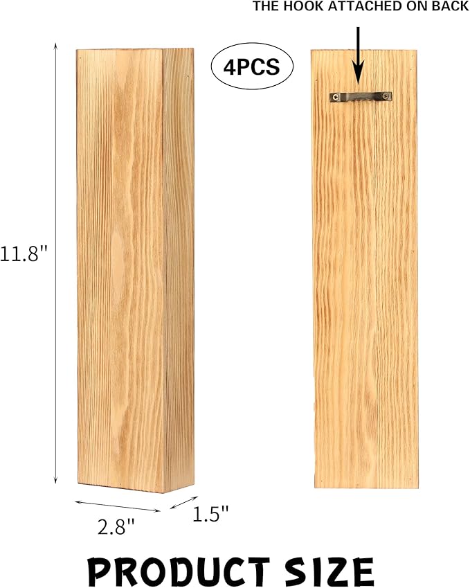 - 【Simple & Rustic Style】 These 4 pack wood wall planters boast a charming and rustic design, adding a touch of vintage elegance to your home. Their simple shape and retro color make them a great combination of modern and farmhouse styles, suitable for various rooms like gallery walls, bedrooms, living rooms, kitchens, bathrooms, dorms, and offices