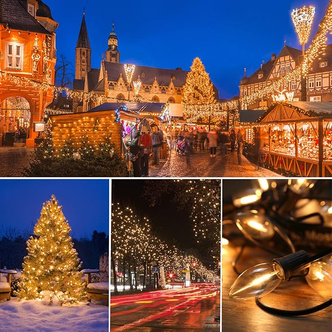 - 3.Retro style bulb: C9 LED transparent glass bulb, E17 candle holder base, perfect combination of antique appearance and LED efficiency, add industrial and retro style to your house with modern LED technology. 2200K is warm, especially at night in winter, when you look through the window under the eaves, trees, roadsides, etc., everything is so full of charm!