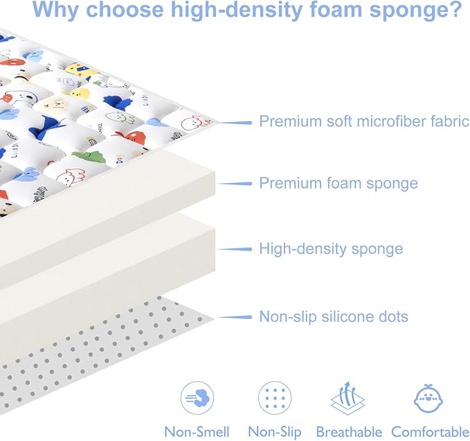 Odorless Premium Foam Baby Play Mat, Soft Microfiber Fabric Crawling Mat for Floor- Comfortable and Hypoallergenic, Non-Slip Cushioned Floor Playpen mat for Infants,Babies,Toddlers