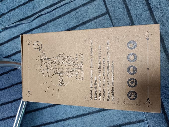 - Solar Powered: Solar garden statue has no installation required and with built-in rechargeable battery. Simply place the solar figurine in direct sunlight and leave the switch in the "ON" position. The garden gnome light will automatically light up at night for over 8 hours after 6-8 hours of charging during the day