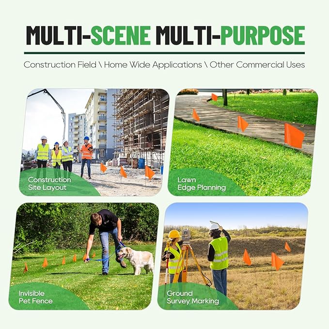 - ⛳【OTHER COMMERCIAL USES】- Maintain workplace safety during construction! Use them to clearly demarcate an area, point out the location of underground cables or pipes. Marking flags are essential during a ground survey for drawing.