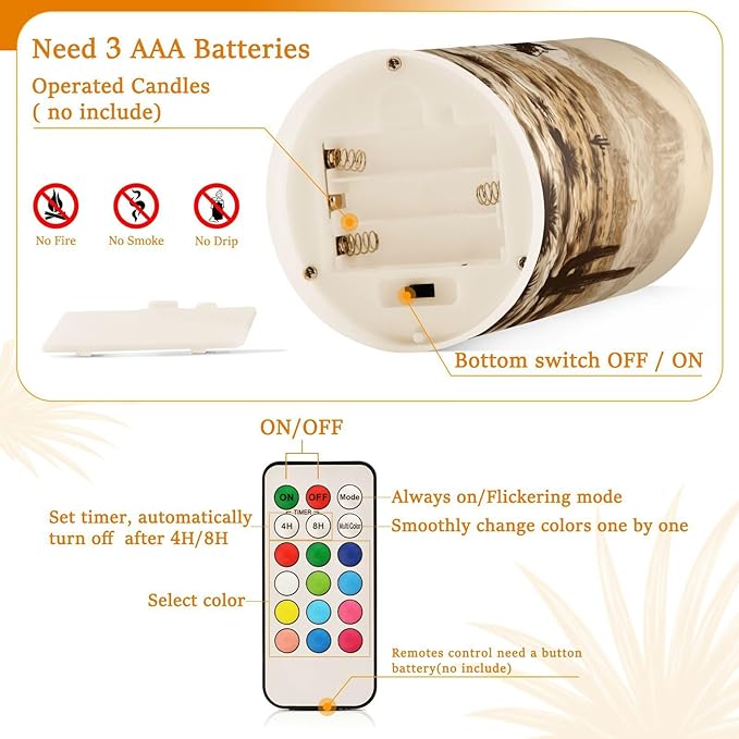 Western Desert Cowboy Flameless Candles with Remote Control and Timer, Adjustable Brightness Long Lasting Battery Operated LED Pillar Candles for Indoor Outdoor Party Home Decor, 2 Pack