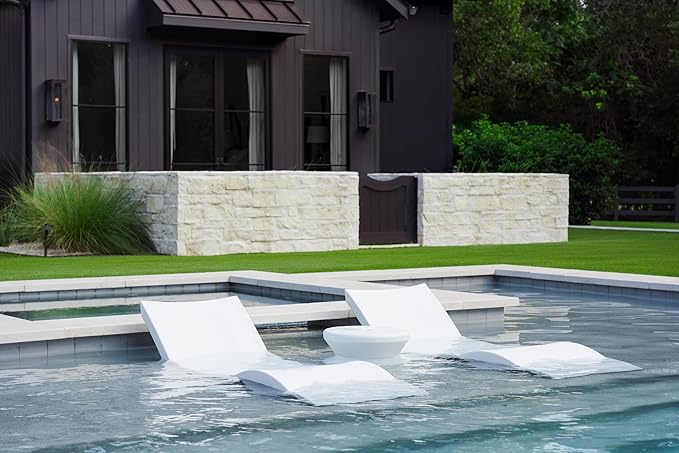 - SAFE FOR ALL POOLS - Whether your pool is saltwater or chlorine, vinyl or fiberglass, commercial or residential, this in-pool lounger and table works in depths up to 9” of water; for deeper ledges, please see our Signature Chaise Deep pool loungers.