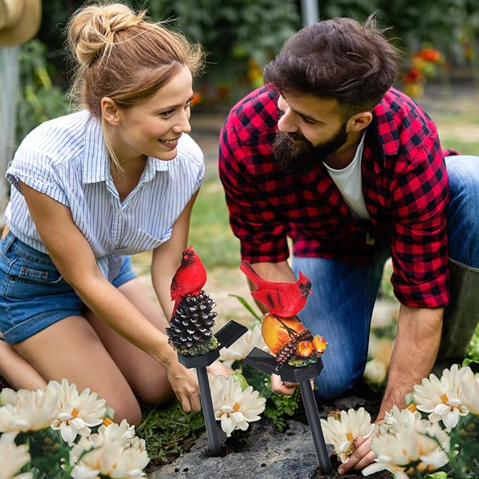 - Charming Cardinal Decor: unleash your holiday spirit with this package that includes 2 pieces of Christmas red bird light stakes in different styles, these red bird solar light stakes are delicate in design and ensured to add a distinctive, festive touch to your home's exterior; They make an ideal addition for Christmas garden decorations, creating a nice lit, safe and welcoming yard for your holiday guests
