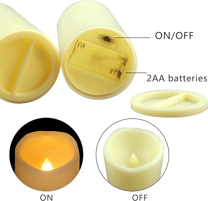 - Look and flicker like real candles, and safe to use with. With flickering LED bulb and realistic appearance, the plastic resin battery candles look like and flicker like real candles. Battery operated LED flameless candles are safe to use with, especially when you have children, seniors and pets at home. There is no fire hazard, no fume and no wax mess.