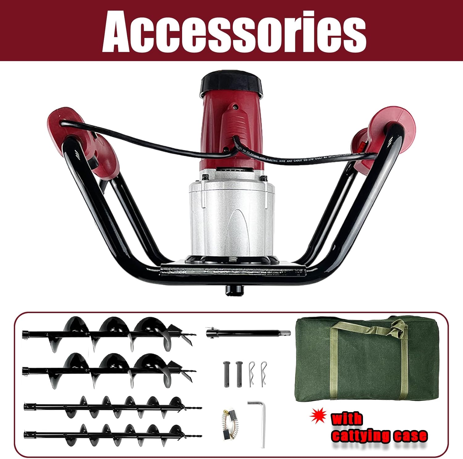 JACKCHEN 1500W Electric Post Hole Digger with Reverse, Double Handle Earth Auger with Storage Bag, 2×6"and 2×4" Auger Bit Earth Auger Drill, Ideal for Installing Fence Post, Drilling, Planting Trees