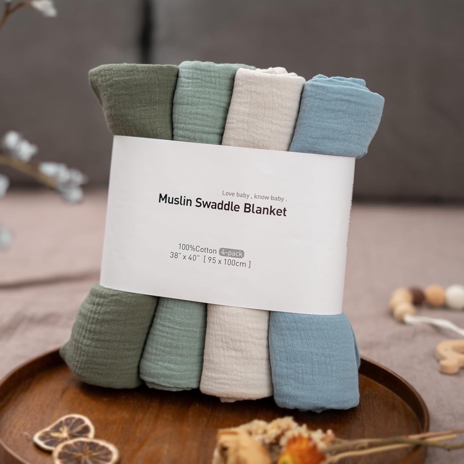 GLLQUEN BABY Muslin Swaddle Blankets for Boys and Girls, 4-Pack Baby Blankets for Girl Boy, Newborn Receiving Blanket, Baby Swaddle Blanket Unisex, Baby Essentials, Registry & Gift, 40 x 38 inches