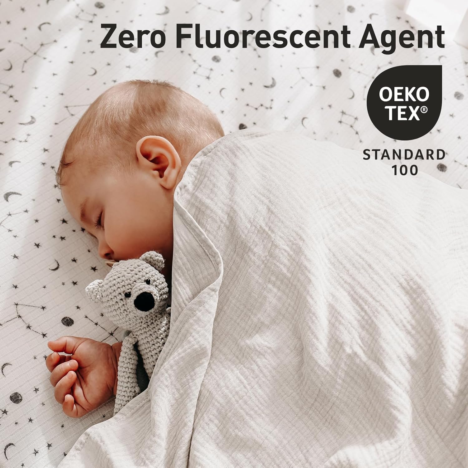 - SOFT & BREATHABLE: Our muslin swaddle blankets are made of 100% cotton (Muslin). The best pure natural material without harmful chemicals for babies, providing maximum breathability with skin-friendly soft touch, which is gentle on baby's skin. And means they can keep your little one warm and cozy in cooler weather, allowing their skin to breathe in warmer weather