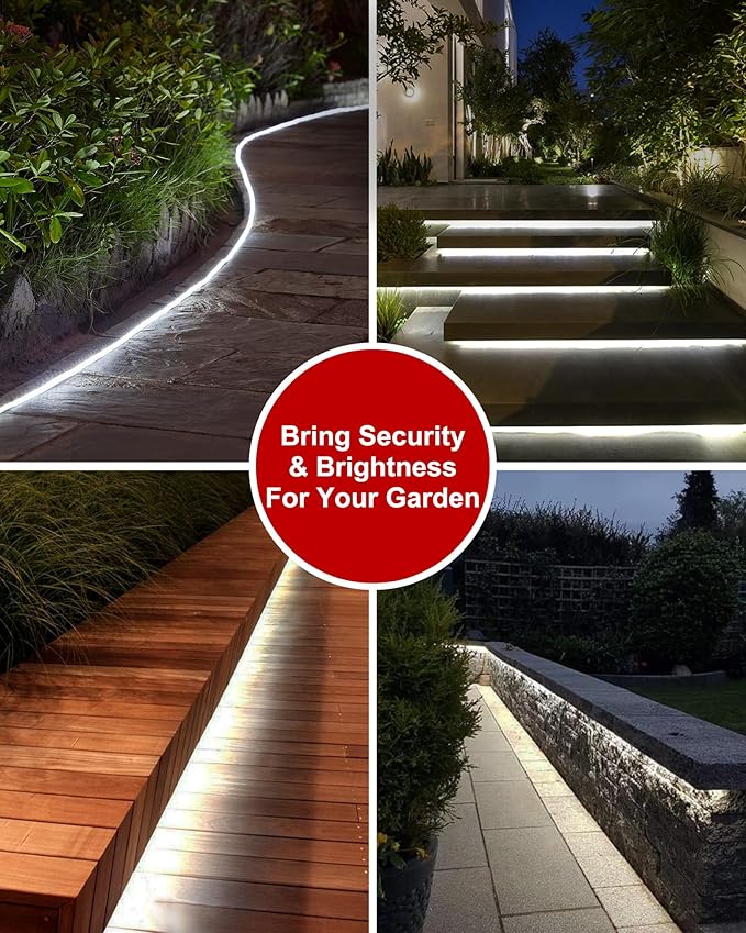 - 【Heavy-Duty & All-Weather Proof】Thicker PVC material (30% more durable) and IP65 solar rope lights outdoor waterproof rating withstand rain, snow, and UV rays. Perfect for outdoor solar string lights in harsh conditions.