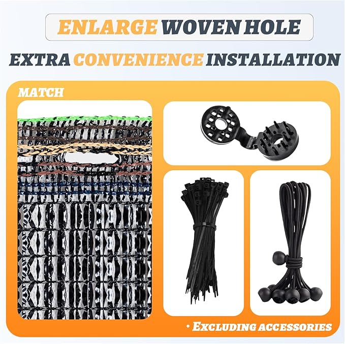 - 【Special Woven Hole Design】Made with new high density polyethylene (HDPE) material which Provides extra convenience for installation, garden shade cloth can block 40% of the sun and provide UV protection.