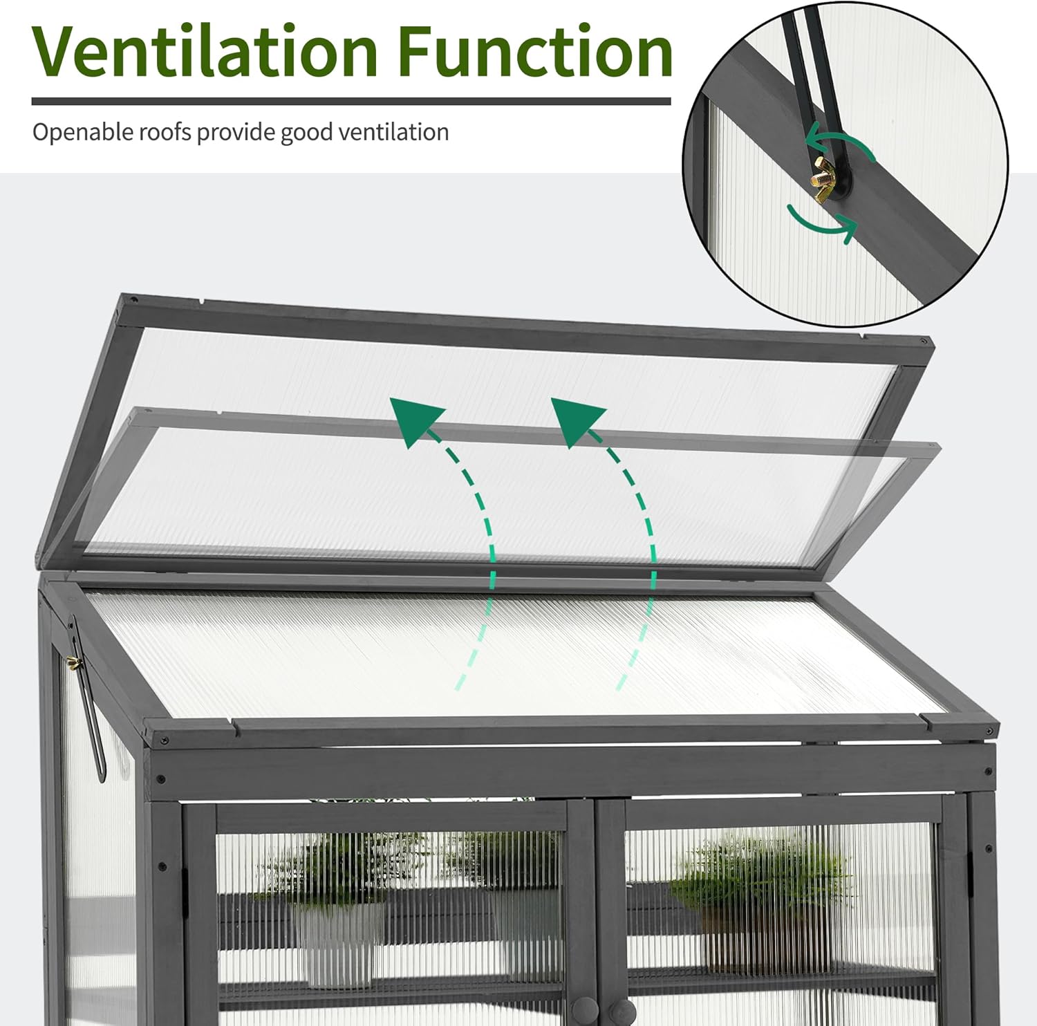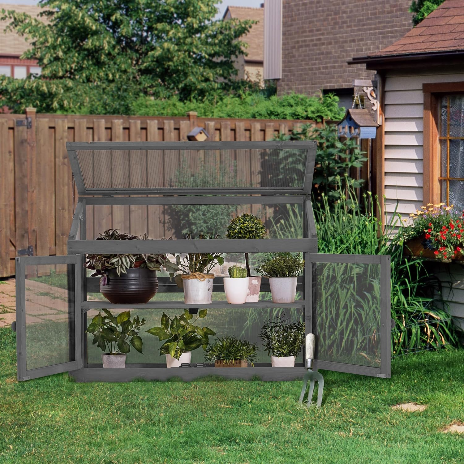 MCombo 2-Tier Wooden Cold Frame Garden Greenhouse Raised Flower Planter Shelf Bed Protection 6057-0160 (Dark Grey)