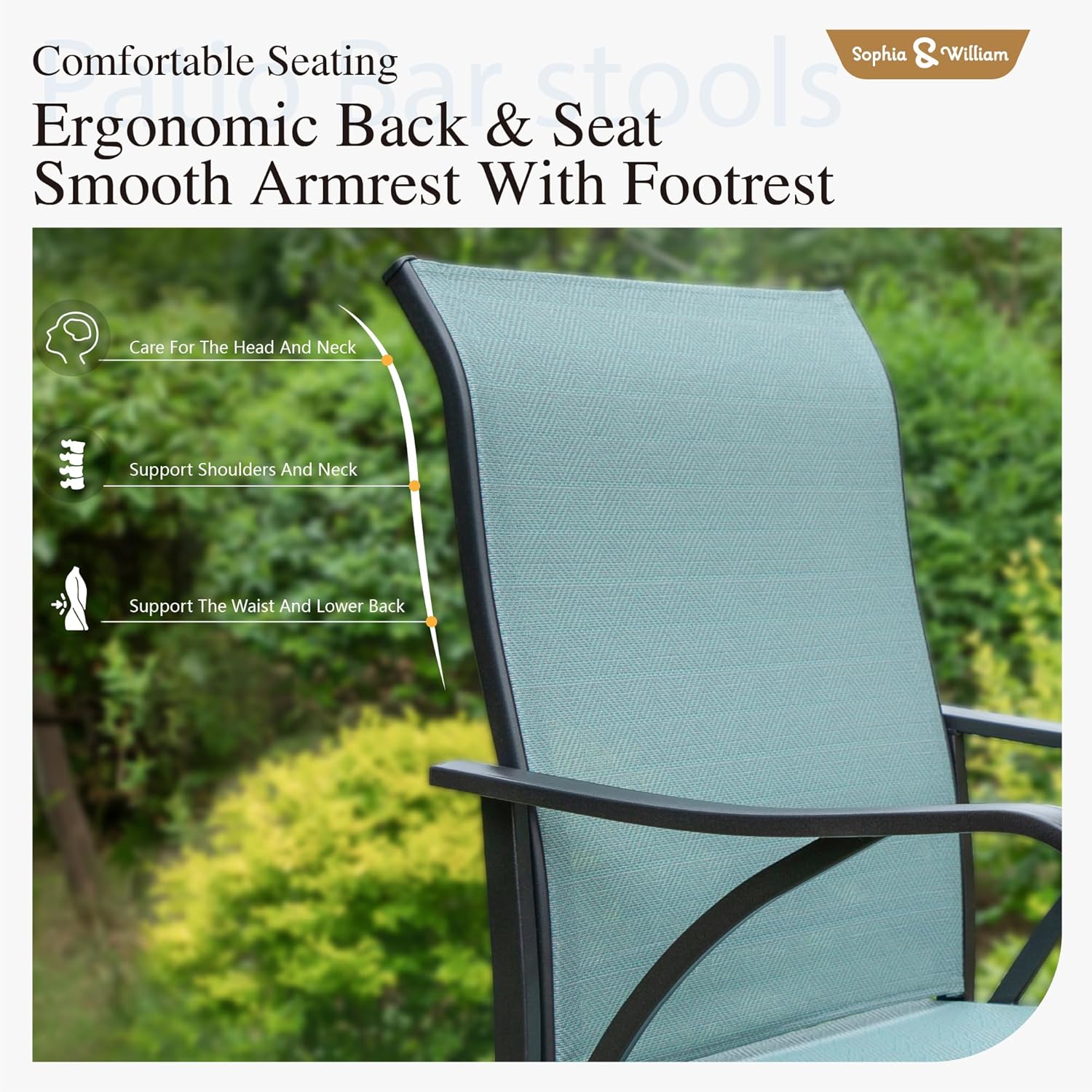 - 【Supportive and Comfortable】Enjoy the ultimate comfort with our patio bar set featuring a supportive backrest, armrests and footrests, providing a relaxing and ergonomic seating experience for extended periods. Seat height: 30, weight capacity: 300 lbs. Table size: 66.9L x 35.4W x 39.8H