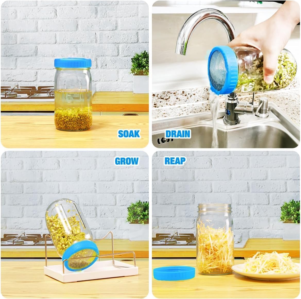 - MAKE SPROUT EASIER - Our sprouting stainless steel stand provides optimal drainage and airflow angles for jars, and keeps seeds&sprouts from rotting. Make your seeds sprout successfully every time, even a novice can sprout easily! Also, the shade sleeves will allow you to grow longer, straighter, and sweeter sprouts.
