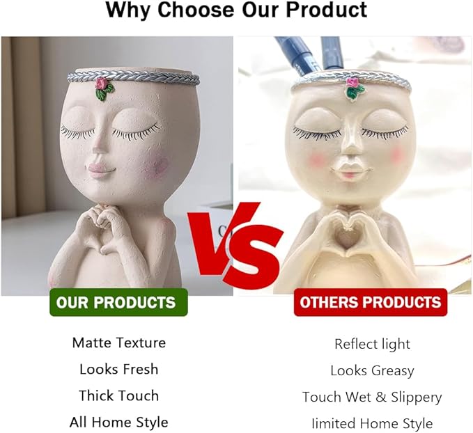 - 🌿Made with Premium Resin: The head planter is made from premium resin material with a special process, not easy to deform or crack, anti-corrosion, durable, no color-fade and light weight, it will be used for a long time indoor outdoor.