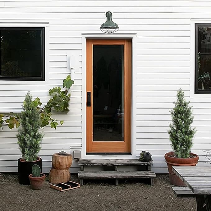 - Realistic Looking:This artificial cedar plant is covered with lifelike cypress crafted from plastic. which make you get close to nature. And it doesn't have weird plastic smell. Due to slight compression deformation during packaging and transportation, please gently adjust the product shape by hand upon receipt.