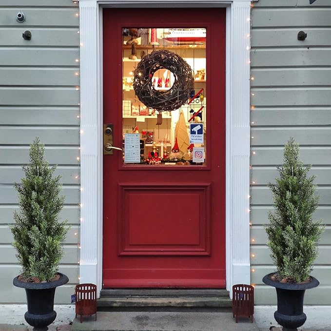 - Size:This Cedar Topiary Trees is 36 inch tall with black pot.You can match a different planter to the style of your home to make it look perfect. Due to slight compression deformation during packaging and transportation, please gently adjust the product shape by hand upon receipt.