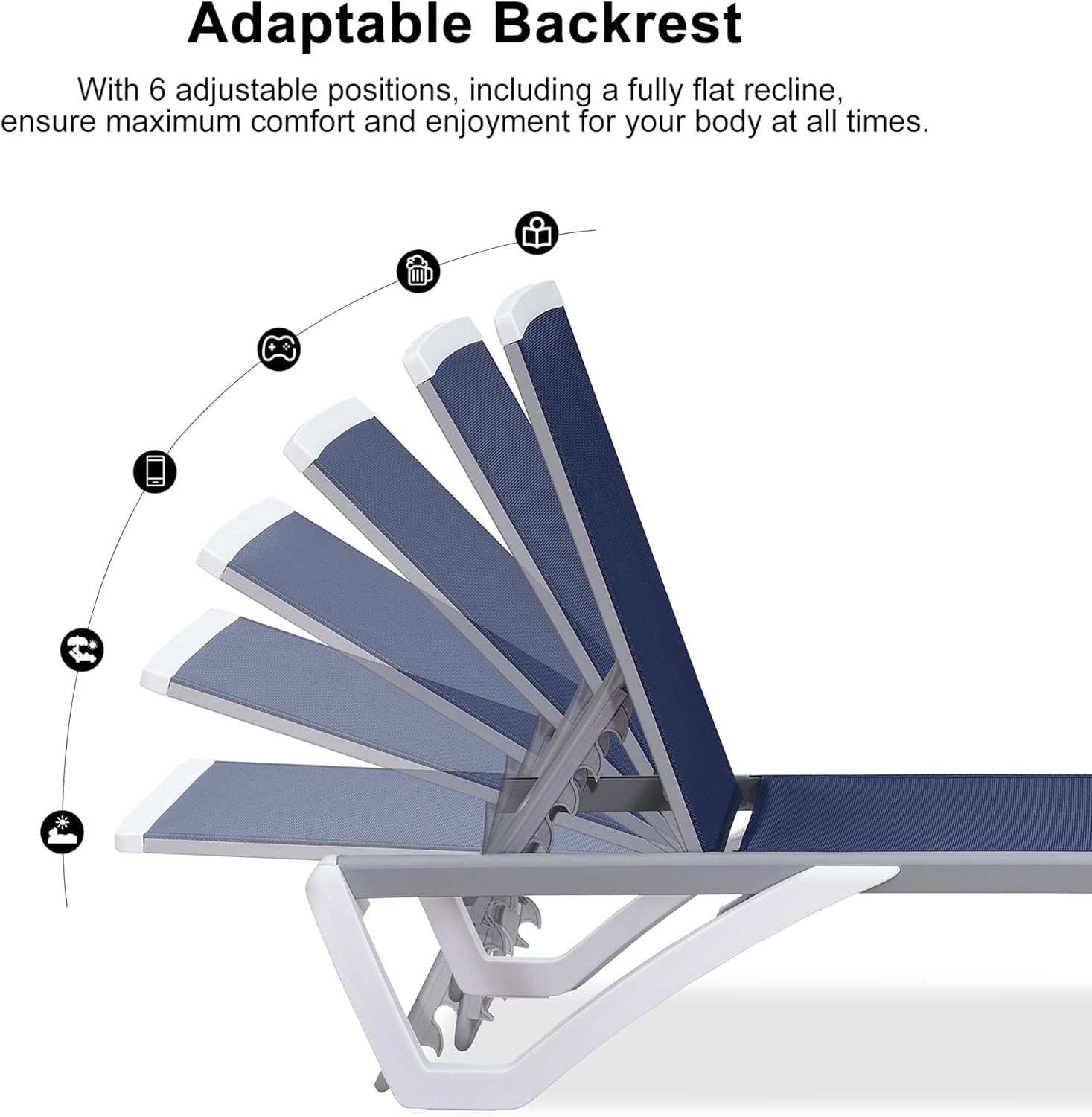 PURPLE LEAF Patio Chaise Lounge Chair Set Outside Aluminum Plastic Stackable Tanning Chairs with Side Table for Pool Sunbathing Beach Deck Outdoor Lounger, Dark Blue