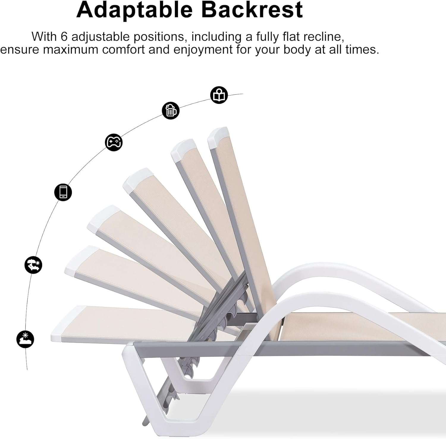- With rust-resistant, non-deforming aluminum support rods and 6 adjustable positions, you can easily find your desired angle, including laying flat.