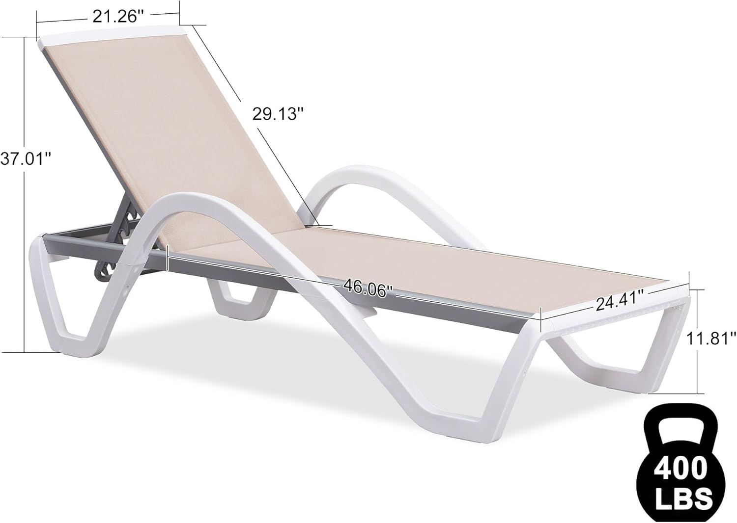 - The textilene fabric features breathability, quick-drying, waterproof, tear-resistant and supports a maximum weight of 400 lbs.