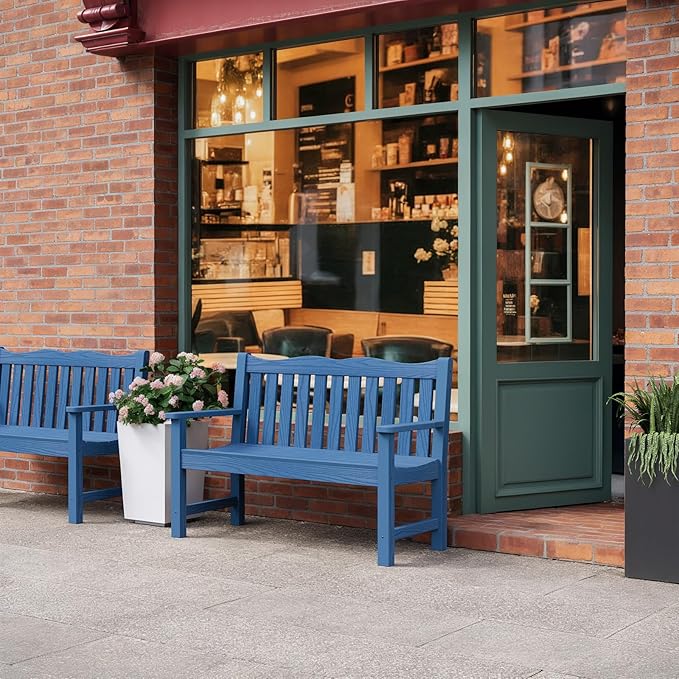 Stoog Outdoor Bench, 2-Person All-Weather HIPS Garden Bench with 800 lbs Weight Capacity, Never Rot or Fade, Waterproof Bench, for Outdoor, Patio, Garden, Porch, Backyard and Park, Blue