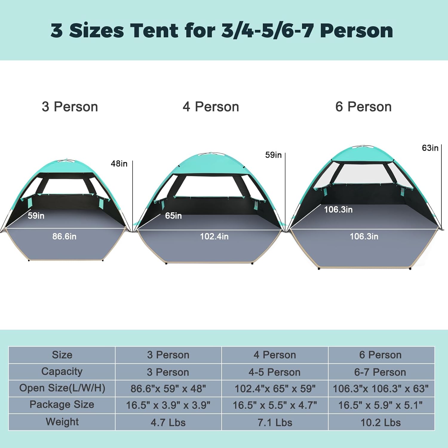 - Super Large Space: With dimensions of 86.6 inches L x 59 inches W x 48 inches H, Gorich beach tent is 30% larger and can accommodate 3 people. For family and friends, it offers a cozy beachside setting