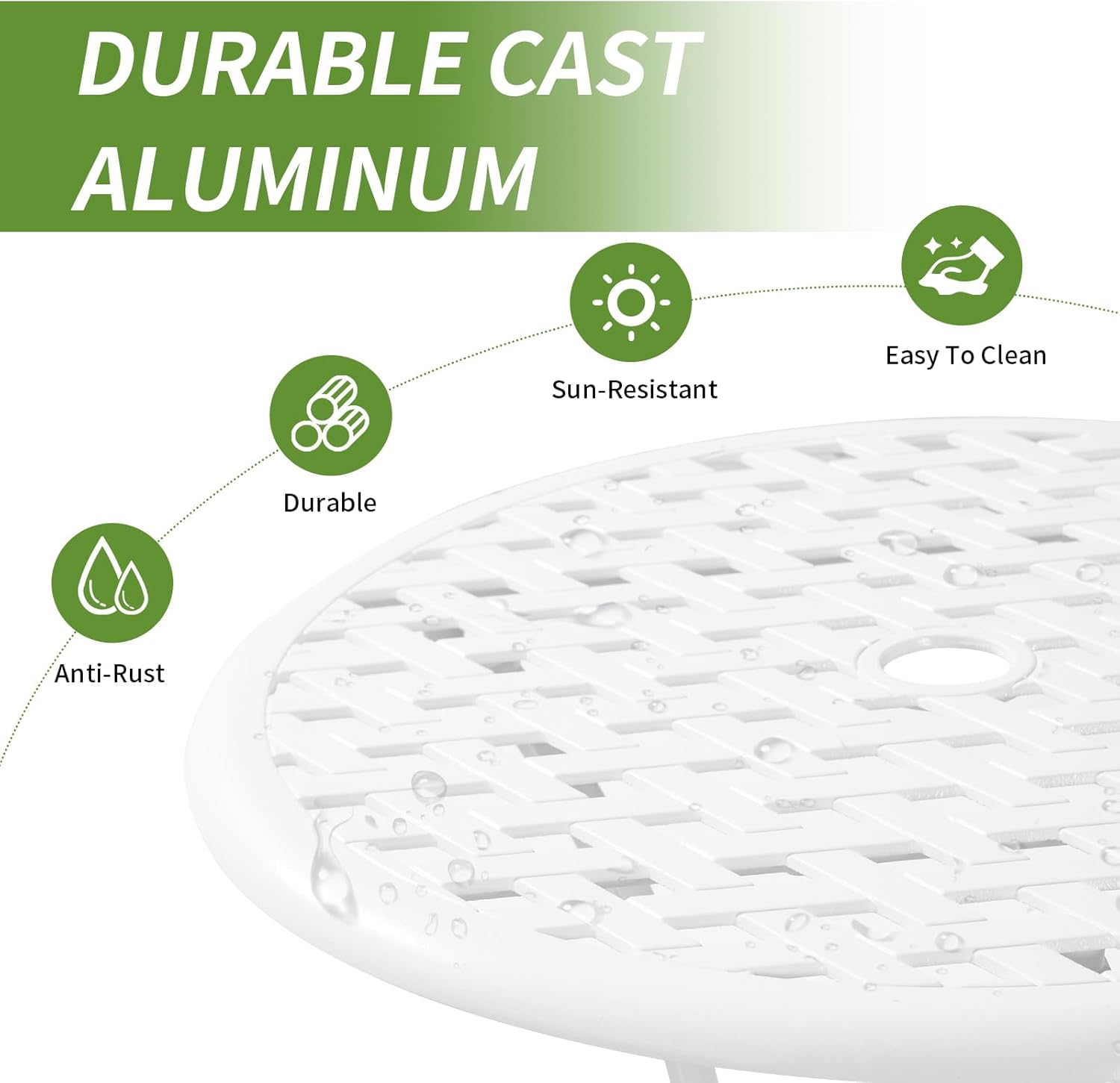 Cast Aluminum Bistro Table and Chairs Set of 2 with 1.97" Umbrella Hole,Weather Resistant 3 Piece Bistro Patio Set Outdoor Patio Furniture Set for Front Porch,Garden,Woven White