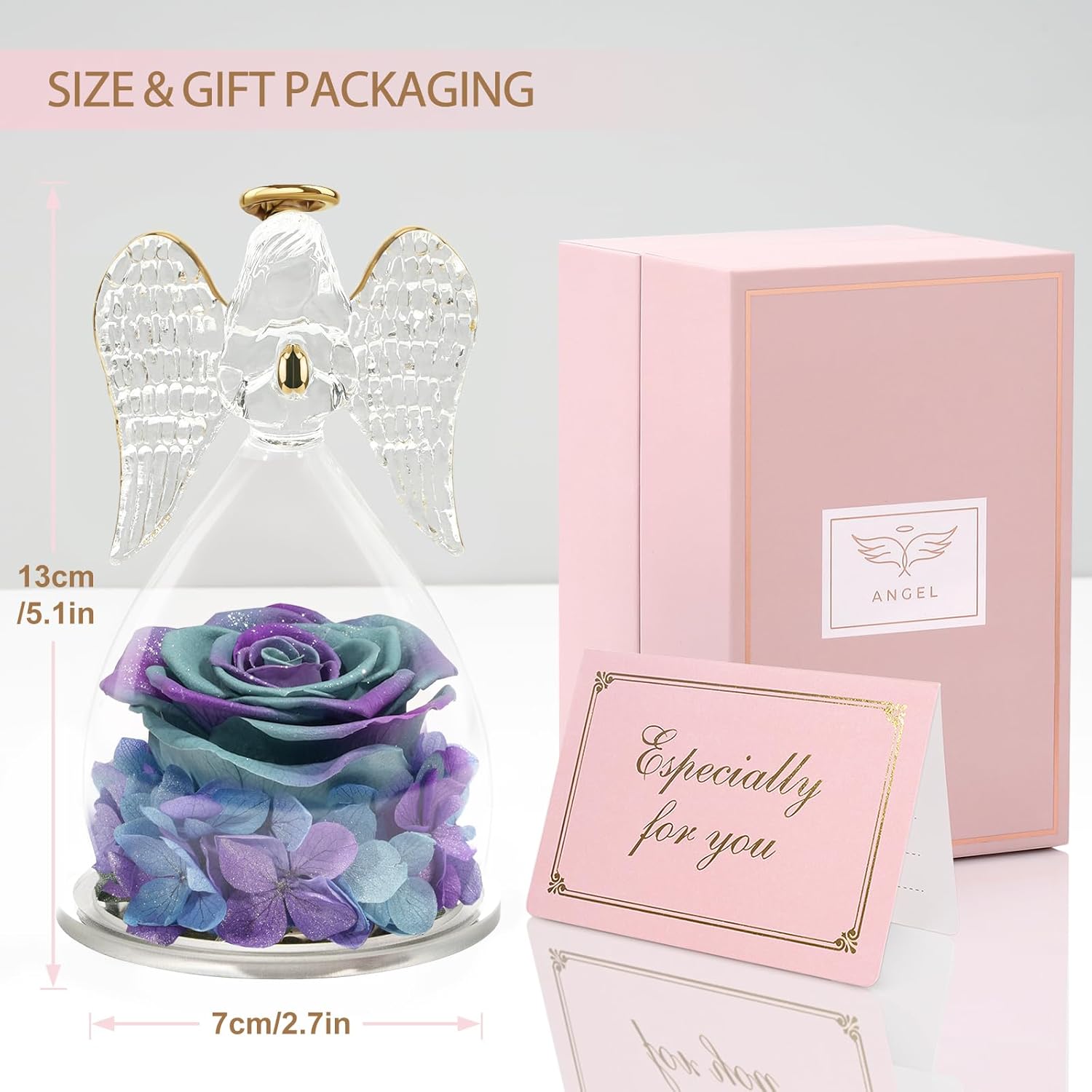 - Our angel figure forever real rose is made with unique preservation process, which can last 3-5 year, you just need to put the angel preserved flowers rose gift in a cool place, no need watering and sunlight.
