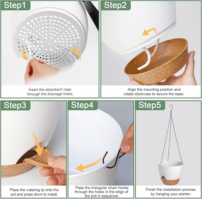 - Self-Watering Planter: Water storage up to 7-10 days. Our hanging pots for plants indoor come equipped with a removable tray that doubles as a water reservoir, ensuring your plants are watered for up to two weeks while you are away.