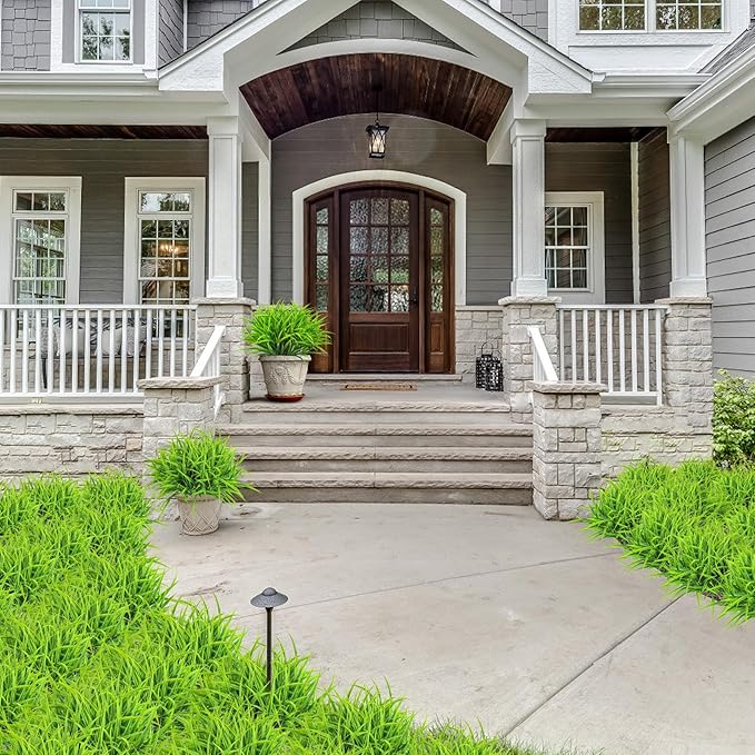 - Natural & Real Looking: The upgraded faux plants outdoor whether indoors or outdoors, can exhibit a similar appearance to real natural plants. Their colors gradient from deep green to light green, presenting an extremely realistic and natural texture. This artificial grass can inject green and vitality into your room or garden, creating a comfortable atmosphere that allows you to relax.