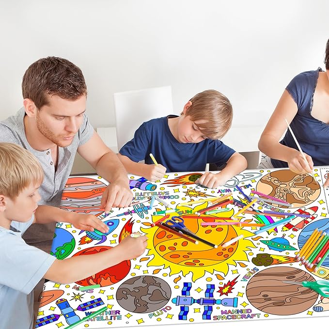- Aesthetic Decoration and A Cherished Keepsake: Elevate your Outer Space party table decoration with this "giant coloring poster for classroom". Beyond being a fun activity, it turns into a memorable keepsake after coloring, capturing precious memories for children. Plus, the clean-up is a breeze, just roll it up and enjoy more time with your kids!