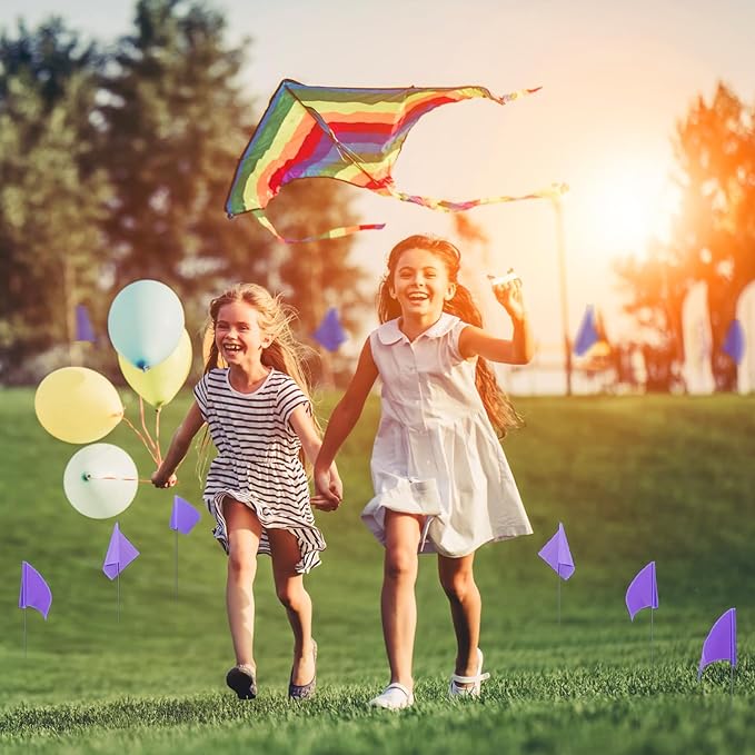 - ⛳【STURDY, NOT FALL】 - Our marker flags are glued on, not wrapped, which makes them much harder to get blown away or removed. The pole itself is made of steel metal wire rather than plastic for better durability. Bright Purple color as clear visual warnings!