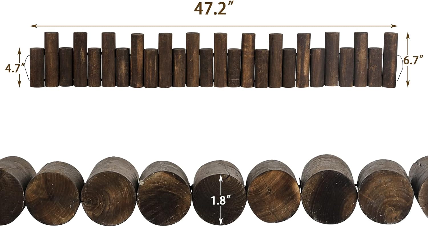 Worth Garden Log Rolls Edging - Wooden Short Fence Border - 6.5 in. H x 47 in. L Burnt Wood Finish Outdoor Garden Lawn Landscape Edging Flexible Decorative Heavy-Duty Tree Fence Border