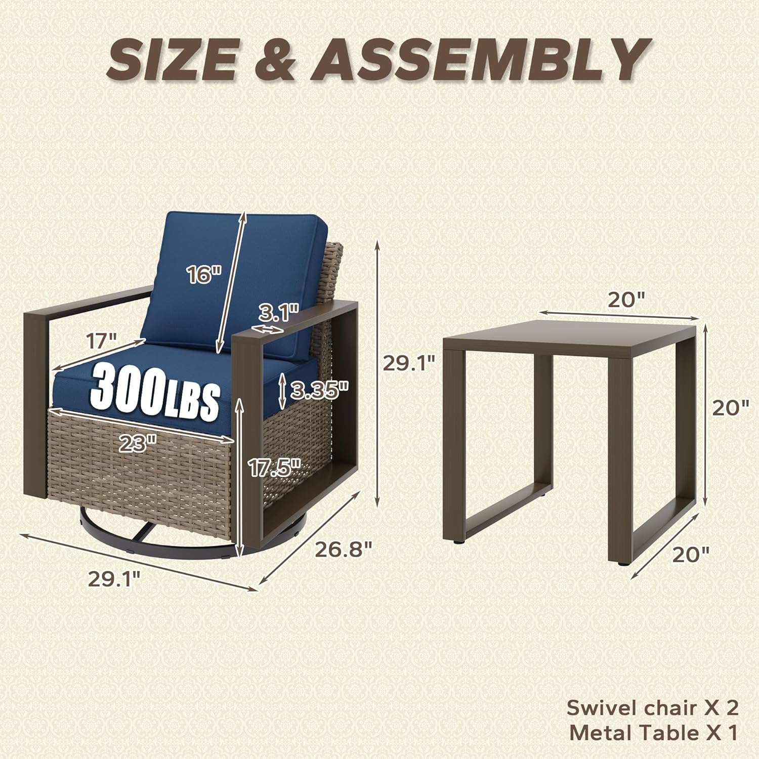 - COMPLIMENTARY SIDE TABLE: This swivel rocker chairs set come with an aluminum side table with stylish look, which is an ideal addition to the patio chairs.