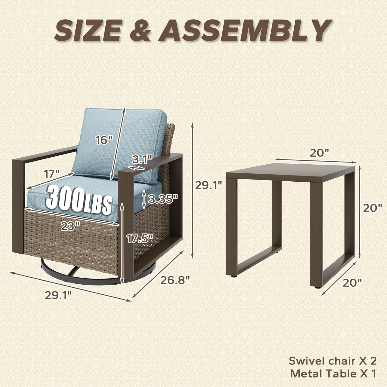 - COMPLIMENTARY SIDE TABLE: This swivel rocker chairs set come with an aluminum side table with stylish look, which is an ideal addition to the patio chairs.