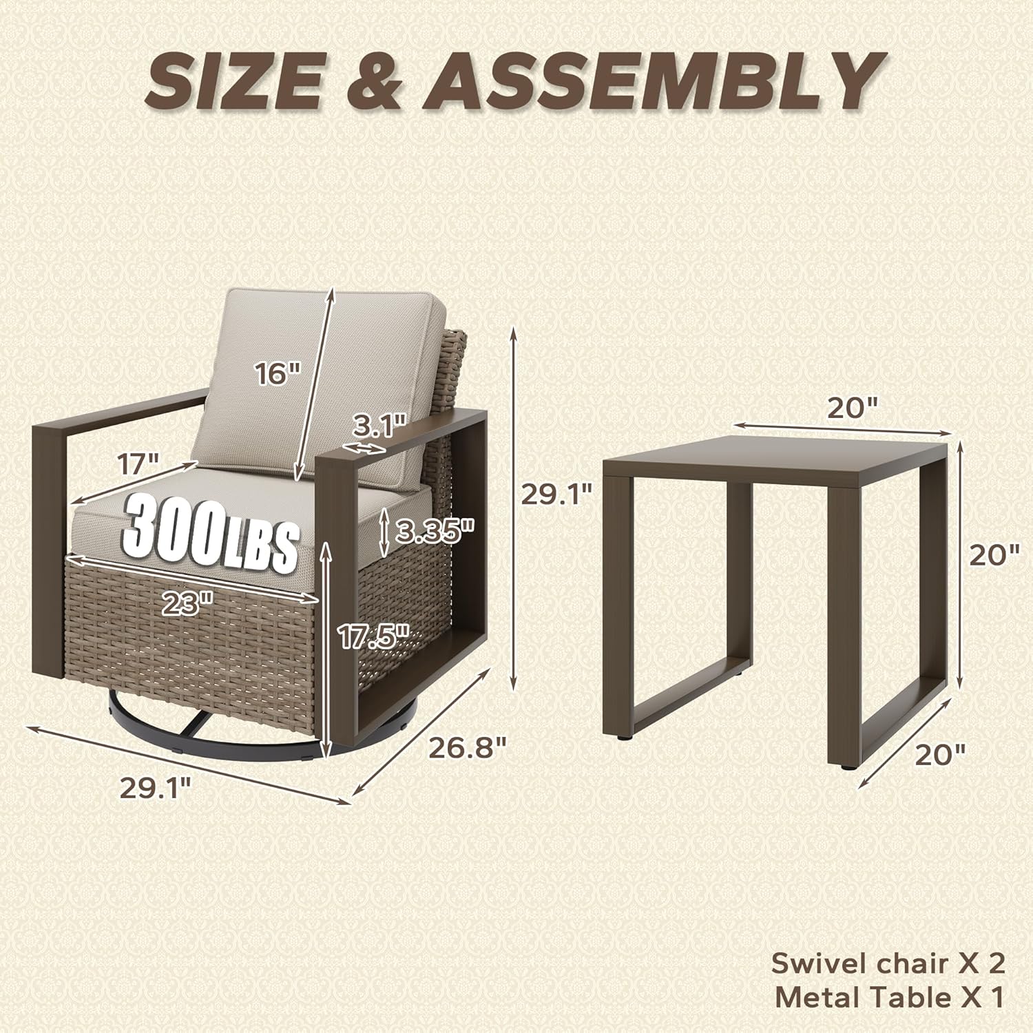 - COMPLIMENTARY SIDE TABLE: This swivel rocker chairs set come with an aluminum side table with stylish look, which is an ideal addition to the patio chairs.
