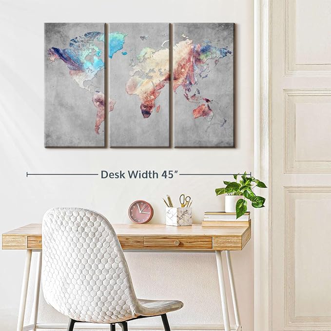 - Easy Setup- You can install our 3-panel world map canvas and wall art map right out of the box because it has a pre-assembled sawtooth hanger. Our ready-to-hang world map art and wall decor can elevate the visual interest of your wall in an instant.