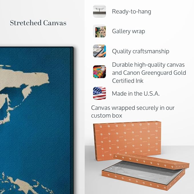 - Vibrant Quality- We print our matte-finished wall maps of the world collection using high-density pigments and latex inks. This high-definition world wall map canvas is the perfect addition to complete the stunning and modern look of your home.